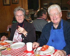Dennis Riggin (R) and Annetta Robinson enjoy the lobster dinner at the Ripley Legion in 2012