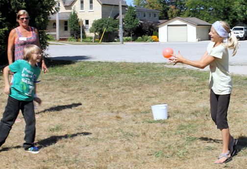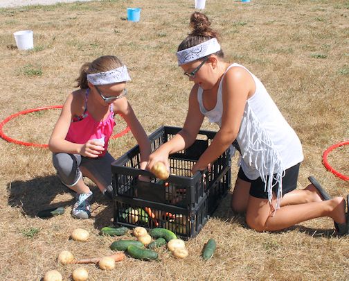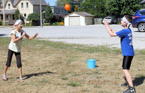 Monday's games were a harvest vegetable relay, and a water balloon relay, while inside, youth were making sheep to match the memory verse, "The Lord is my Shepherd, I shall not want," and singing songs, all while wearing colourful bandanas.