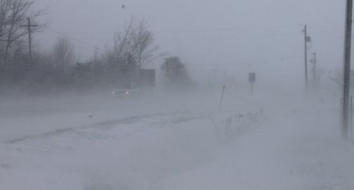 Blowing and drifting snow, on Highway 21, beside Kincardine Home Hardware, Wednesday afternoon, looking south