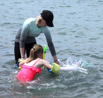 The video depicts Wittek's nine-year-old daughter, Serena, swimming in the lake surrounded by plastic, as well as actress Melissa Boerger urging people to use the 'Fill it Forward' app.