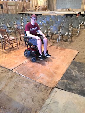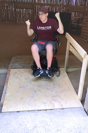 Accessibility Man Josh Easton of Kincardine tests the accessibility ramp and mats at the