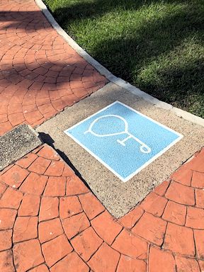 The walkways around the condo area were mostly made of stone or bricks. Though they were in good condition, they were very bumpy to push a wheelchair over.