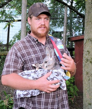 The kangaroos were one of the last stops. Geddes showed the club a baby kangaroo that is being hand-raised. It's in a fleece bag that he carries everywhere with him, even to bed. The joey is fed a bottle every three hours, day and night.