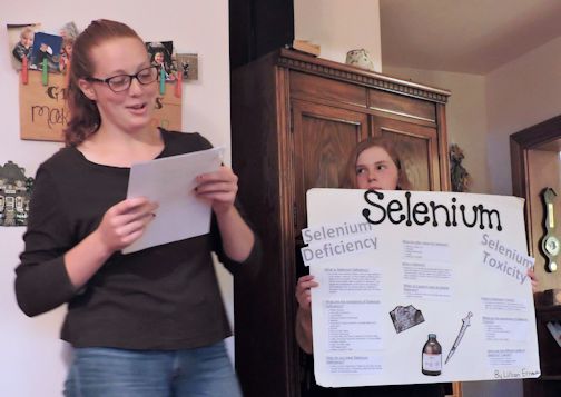 Lily did a project on Selenium deficiency and toxicity. Selenium prevents white muscle disease. This is a degenerative muscle disease that can cause everything from muscle stiffness to obvious pain with movement and the eventual inability to stand.