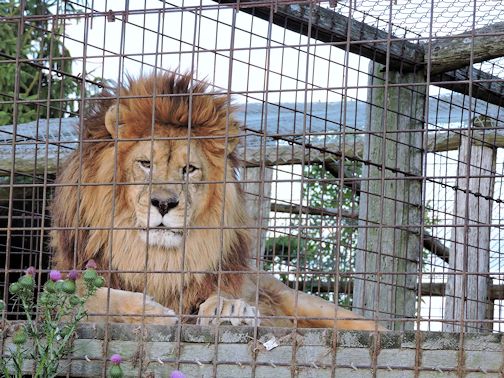 While avoiding a protective swan, the club moved to the rest of the lions. Samson one of the male lions, was quite willing to climb onto a platform in his pen and pose for a few pictures.