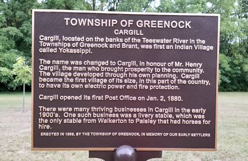 Cargill bought a great deal of land in the Greenock Swamp in 1879, and made a lot of money by harvesting valuable white pine from it. He had canals built in the swamp, making it easier to haul logs from the miry depths.
