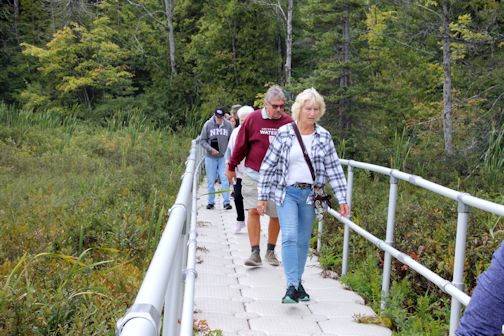 From there, the school bus tour headed to the swamp where we took a short walk on the newly-constructed floating boardwalk system – which is an experience all on its own. It feels as if you are walking on one of those inflatable bouncy castle surfaces, but a bit more stable. It's rather eerie to realize that the swamp is virtually bottomless and the boardwalk sits on the bog.