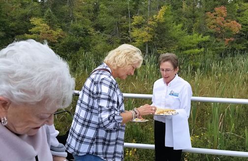 We were greeted at the end of the boardwalk by formal waiters, serving refreshments, and we had a beautiful view of Schmidt Lake.